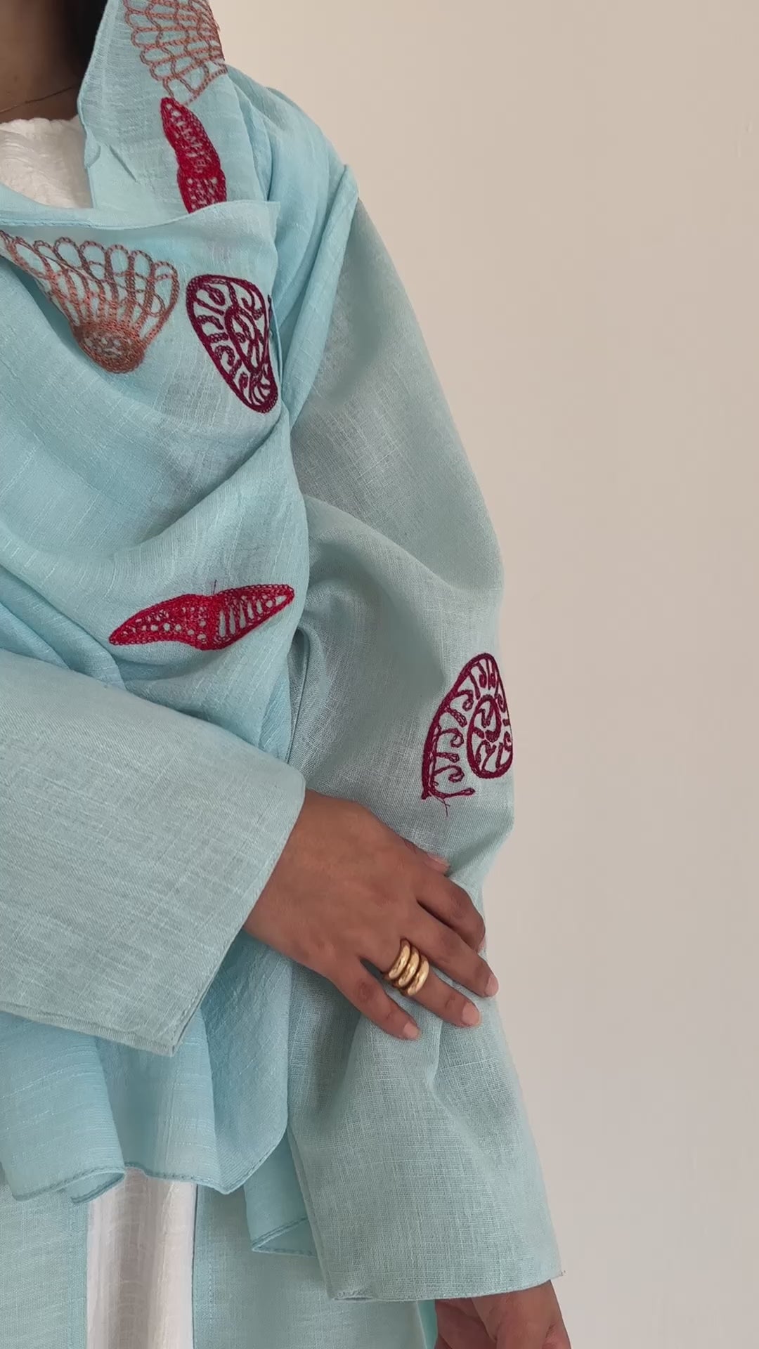 MW1581 - عباية لينن هندي مطرزة بالكامل | Fully Embroidered Indian Linen Abaya