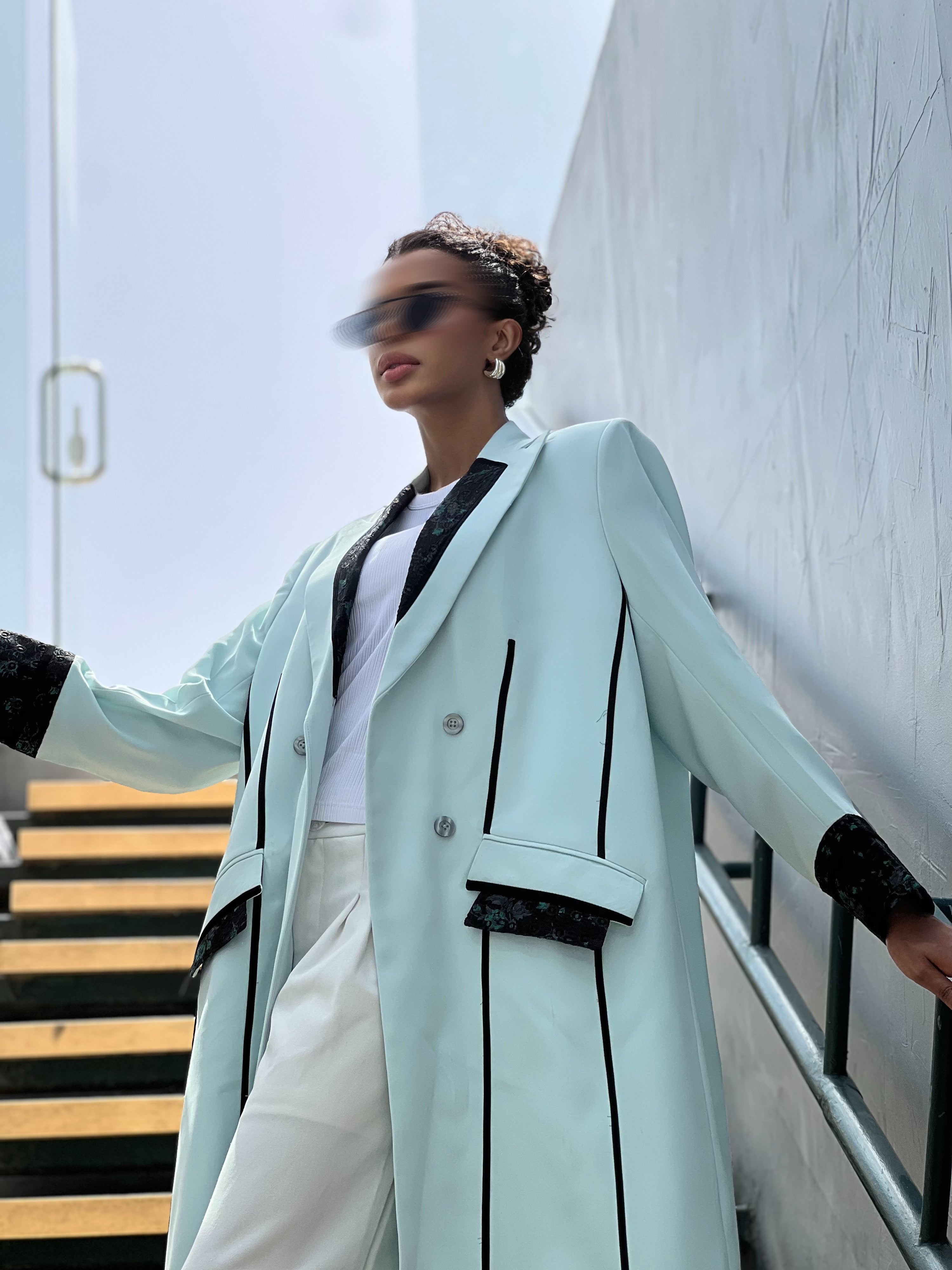MW1495 - لينن بيج مخطط مبطن شيفون نص بيشت