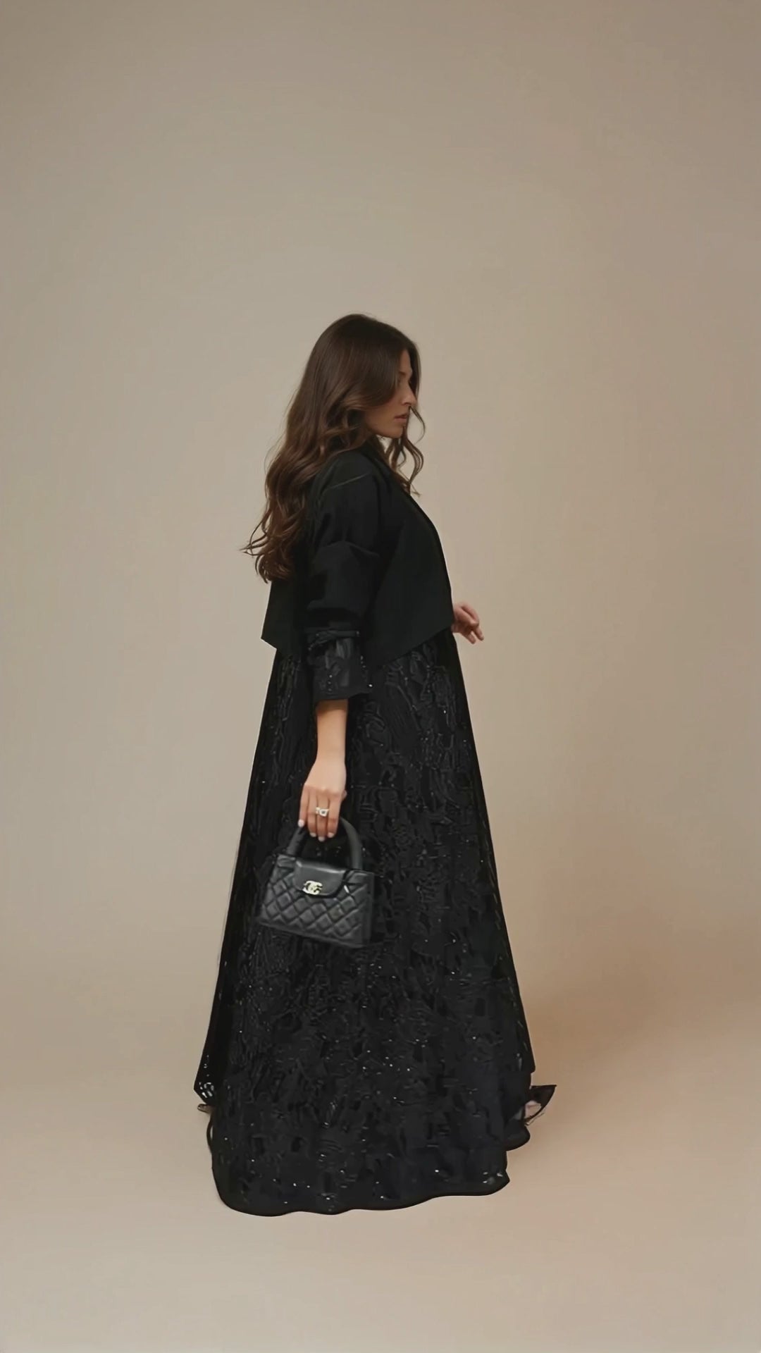 MW1601 - عباية بليزر باللون الأسود الفاحم | Charcoal Black Blazer-Style Abaya